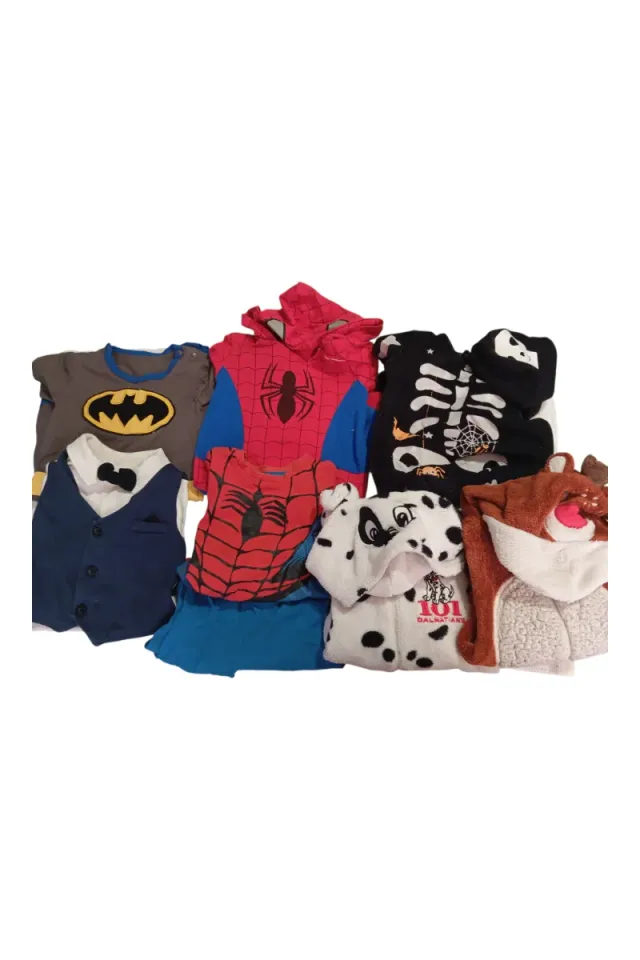 Detalles del productoLote de ropa infantil con varios disfraces y un conjunto de vestir.
