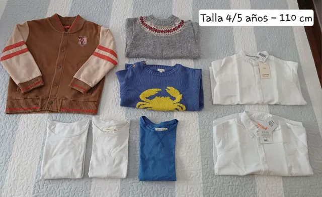 Detalles del productoLote de ropa para niño, 8 prendas de manga larga/invierno. Talla 4/5 años. Marcas variadas: Zara Kids, Mango, Gocco, Sfera... las 2 camisas están sin estrenar, con etiqueta. Todo como nuevo y en perfecto estado. Se vende tan económico por falta de espacio.