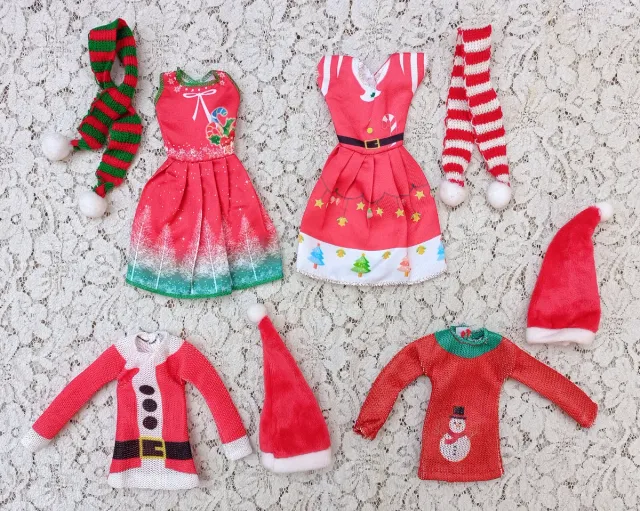 Conjunto de ropa para Barbie o muñecas similares, con temática navideña.