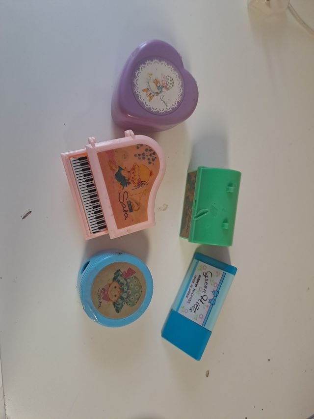 Detalles del productoConjunto de sacapuntas con diseños infantiles. Sara y Rinbbon