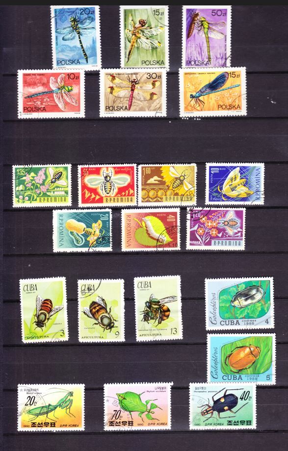 - Incluye sellos de Polonia con libélulas y otros insectos.