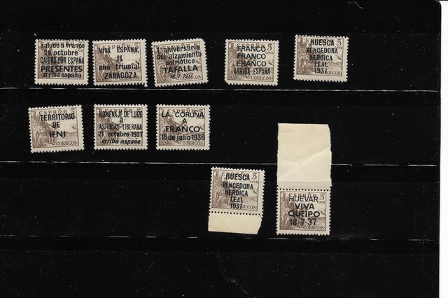 LOTE SOBECARGAS DISTRINTAS NÚMERO 916 - CID 5 CTS. ESPAÑA (AÑO 1940)