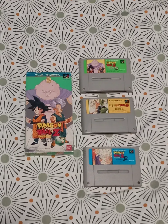 Detalles del productoLote de videojuegos de Dragon Ball Z (1,2 y 3) para SuperFamicom.