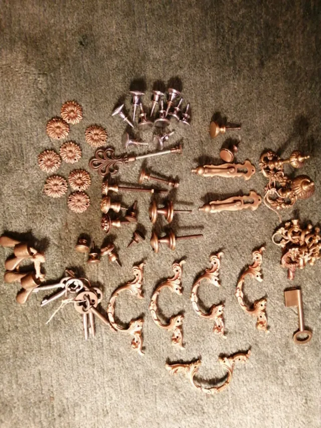 Detalles del productoConjunto de piezas de latón para carpintería, ideales para dar un toque clásico a tus muebles.