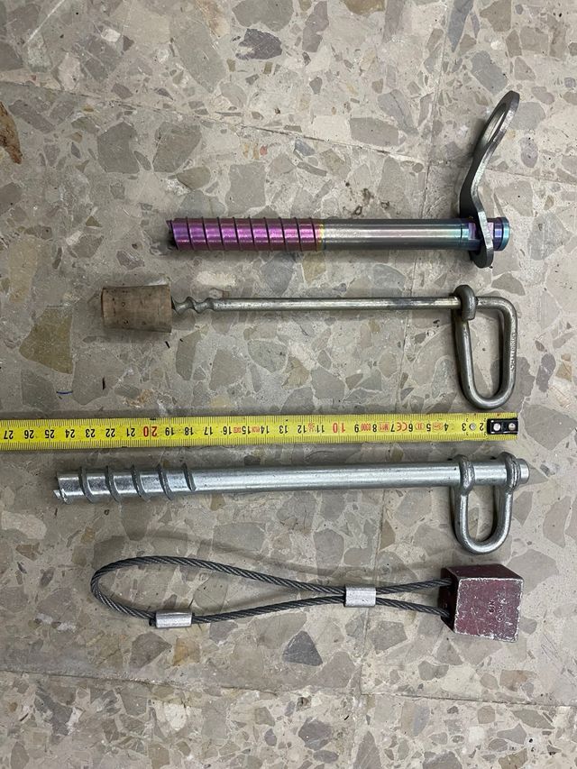 Se vende lote de material de escalada. - 2 tornillos de hielo. - Dos clavos de hielo. - Empotrador.