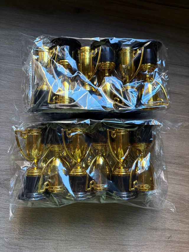 Son 2 paquetes de 12 trofeos cada uno, es decir, un total de 24 trofeos