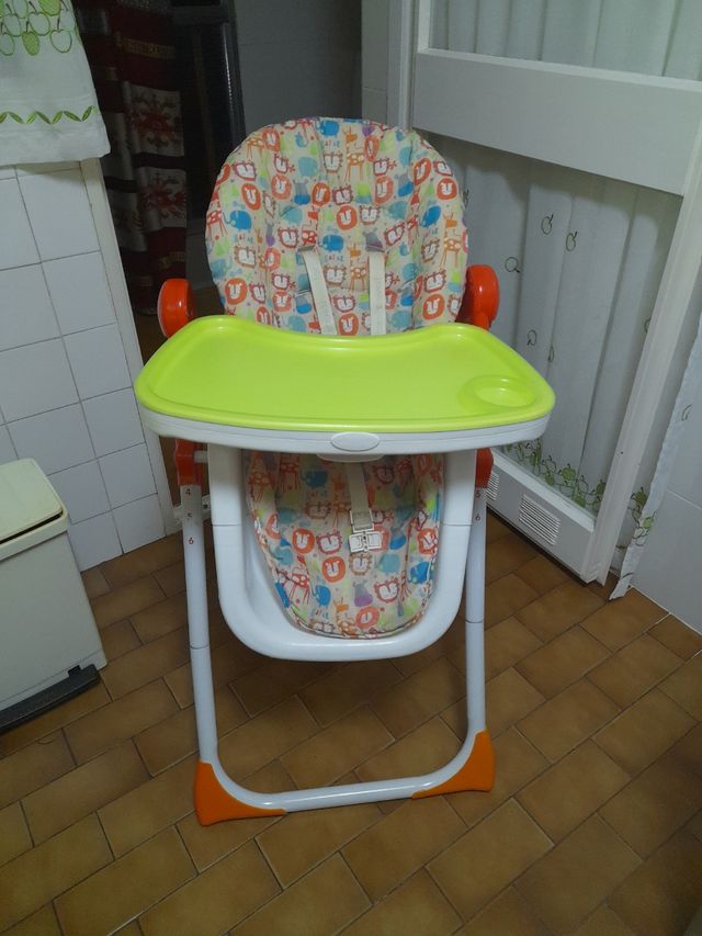 Lote de artículos para bebés y cocina. - Trona infantil. - Cuna de viaje plegable. - Juego de 5 botes para cocina.