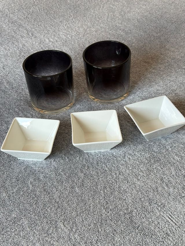 Lote vasos de vidrio + cuencos de porcelana