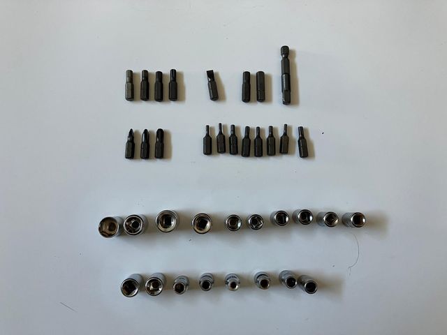 Tipos: Son puntas de inserción hexagonal estándar. A simple vista, parecen incluir los tipos más comunes como Phillips (PH), Pozidriv (PZ) y posiblemente Torx (TX) o planas (SL), en diferentes longitudes (cortas y una más larga).