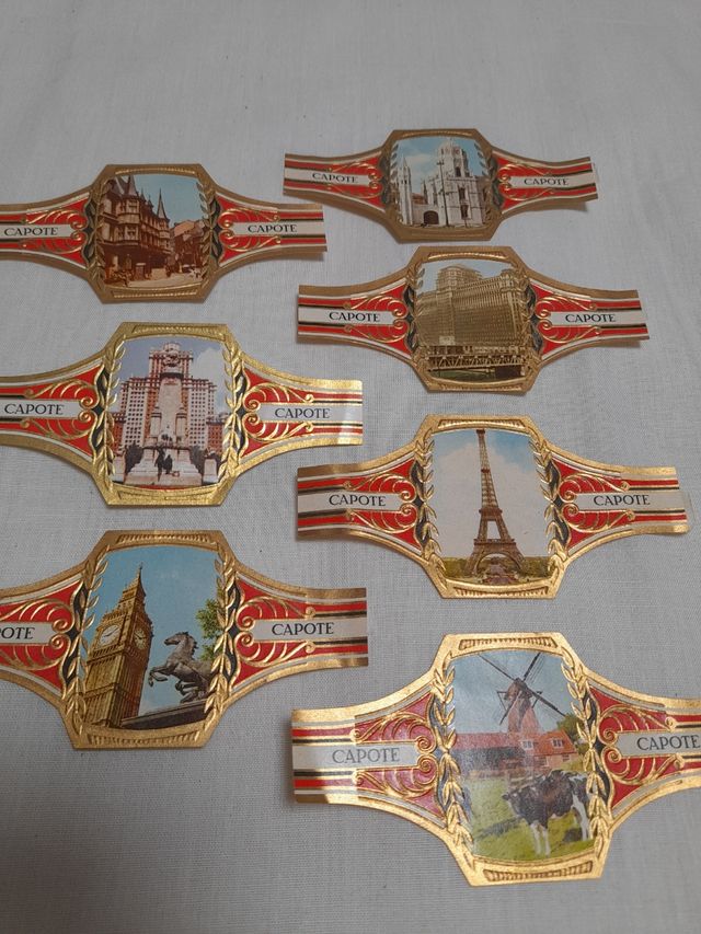 lote de 7 vitolas de la colección 24 maravillas mundiales.