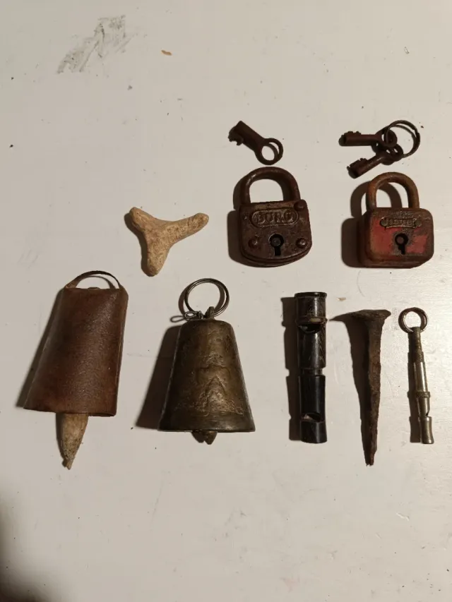 Lotes de antigüedades: candados, llaves, campanas