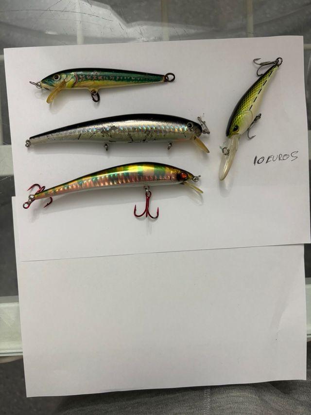 Detalles del productoConjunto de cuatro señuelos de pesca variados.
