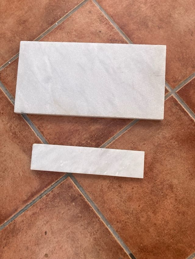 Lozas y rodapiés de mármol blanco. - Material: Mármol blanco.