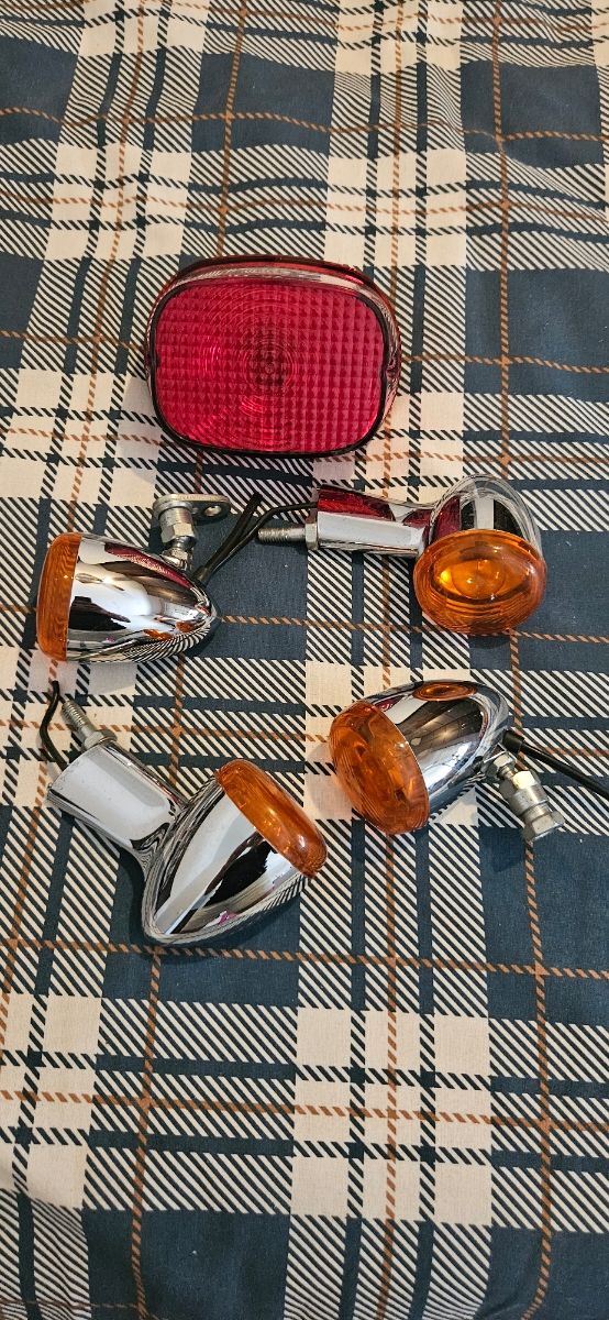 Detalles del productoJuego de intermitentes y piloto trasero para motocicletas Harley Davidson. Son piezas cromadas en buen estado.