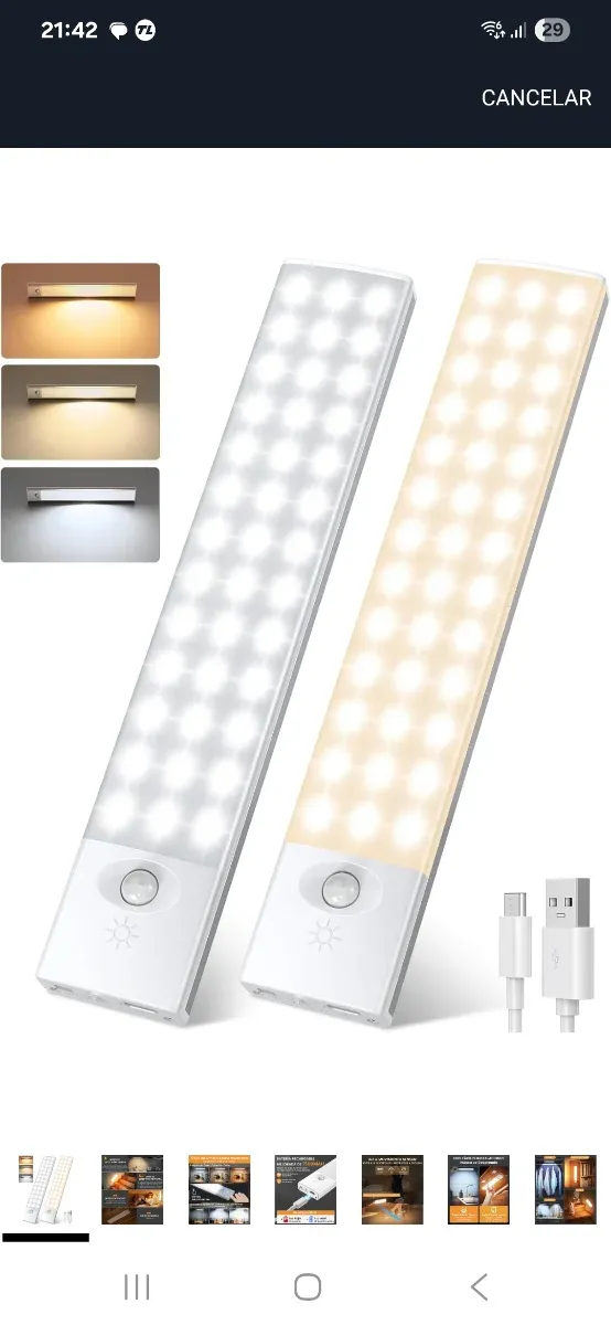 Luces LED Sensor Movimiento USB nuevo 2 un.