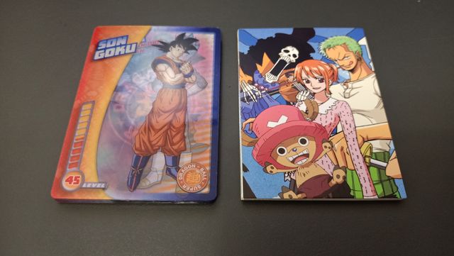 Lote de 14 luminecards de Dragon Ball y 8 cartas de One Piece de Panini.