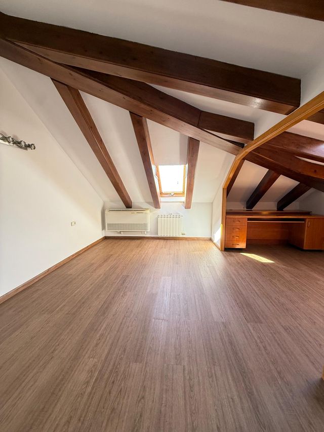 Detalles del productoCuenta con 83 m2 útiles distribuidos en dos plantas llenas de luz natural y detalles con carácter. En la planta principal encontrarás un salón-comedor espacioso y muy luminoso, con salida a un balcón amplio y soleado; una cocina independiente equipada con lavavajillas y nevera; un baño completo y una habitación doble. El balcón dispone de un práctico espacio cerrado para lavadora y secadora. En la planta superior se ubica una habitación abierta a un despacho (que puede cerrarse y convertirse en otra habitación) perfecta como dormitorio principal, una pequeña habitación y otro baño completo. Gastos de la comunidad 60 euros/mes.