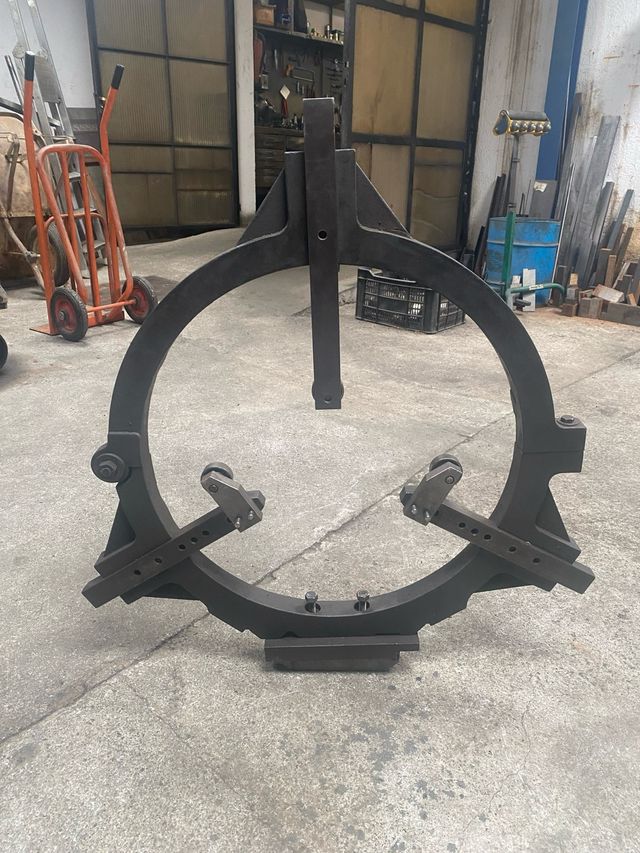 Luneta de torno de metal, diseñada para dar soporte a piezas largas.