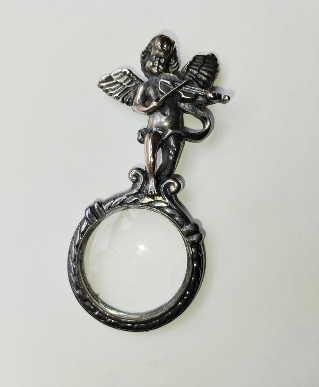 Lupa pequeña colección coleccionismo coleccionista vintage retro decoración metal metálico angelito músico música