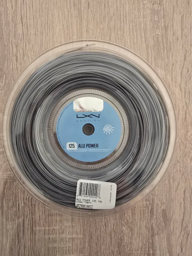 Detalles del productoRollo de cuerda de tenis Luxilon Alu Power.