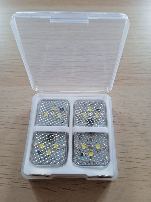 Detalles del productoPack de luces LED para la puerta de tu coche. Se activan al abrir la puerta para alertar a otros conductores. 2 piezas. Fuente de luz: 6 LED. Modo de flash: parpadeo alterno. Batería 2 piezas de batería/bombilla de litio incorporadas (no admite recarga). El recinto hermético evita que penetre el agua de lluvia diaria. Diseño con patrón de diamante.