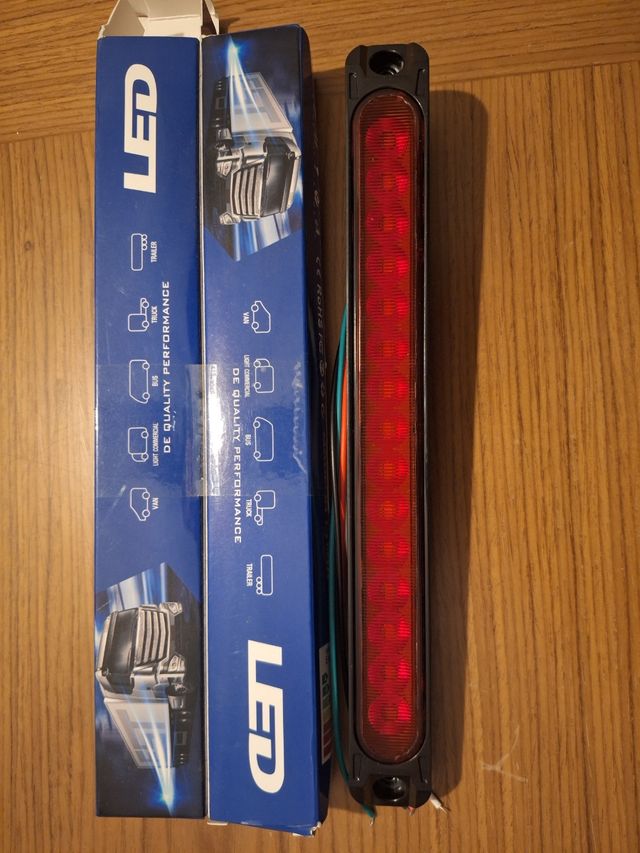 Detalles del productoLuz de freno LED roja para vehículos comerciales.