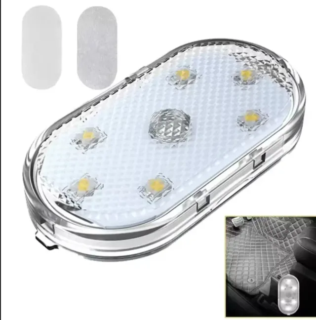 Luz LED ovalada con diseño moderno y compacto. - Seis luces LED integradas. - Cubierta transparente con detalles. - Incluye dos adhesivos para montaje.