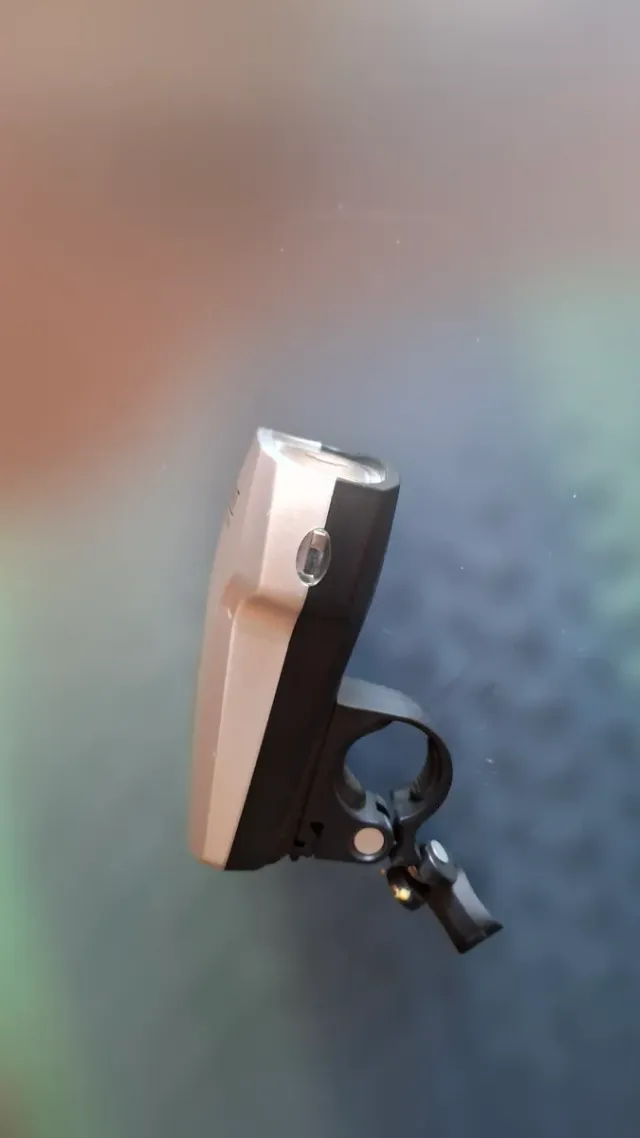Luz delantera para bicicleta. - Color plateado y negro. - Incluye soporte para manillar.