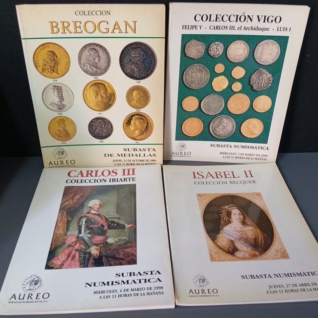 Detalles del productoM09. Catálogos Aureo Colección Vigo, Iriarte, Bécquer y Breogán. 1035 g. Buen estado general, sin defectos, ni anotaciones observadas