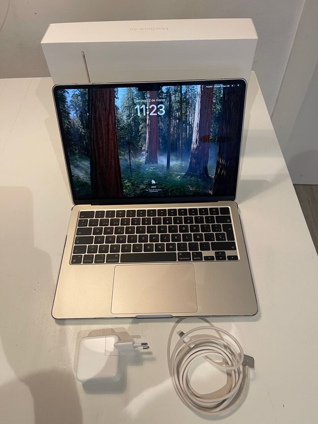 Detalles del productoApple. Macbook Air del 2022 color blanco estrella. Pantalla retina 13”, M2, 8Gb/ 256Gb.
