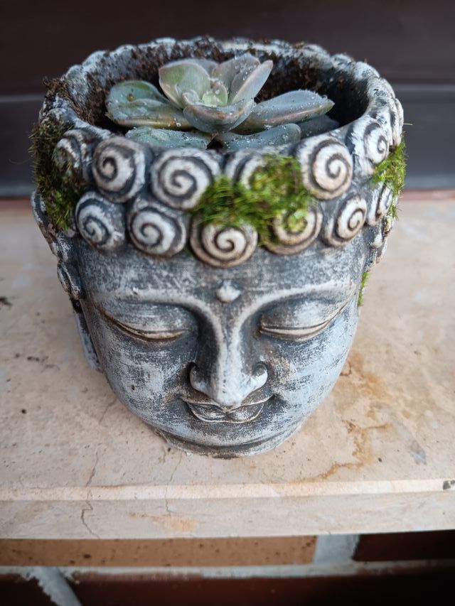 Detalles del productoOriginal maceta con forma de cara de Buda, ideal para dar un toque zen a tu hogar. Incluye una suculenta.