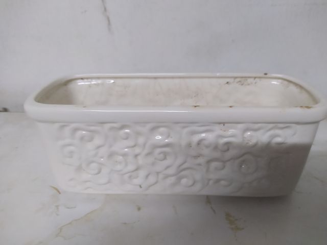 Macetero de cerámica en color blanco con un bonito diseño en relieve. - Diseño floral en relieve. - Forma rectangular.