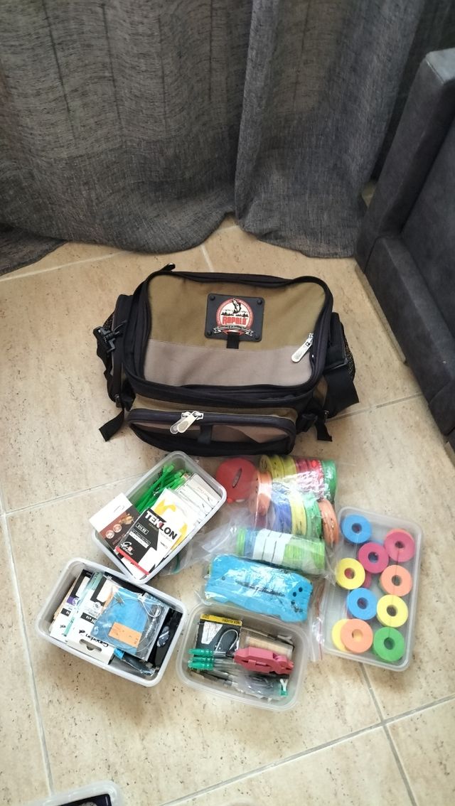 Detalles del producto Macuto estuches Rapala para guardar aparejos de pesca. Están en buen estado, de color beige y negro