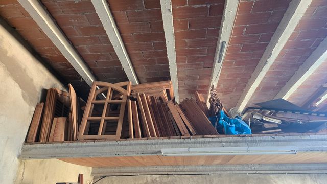 Detalles del productoVendo lote completo de madera y material de carpintería tal como aparece en la foto: ventanas antiguas, marcos, listones, tablones y piezas variadas.