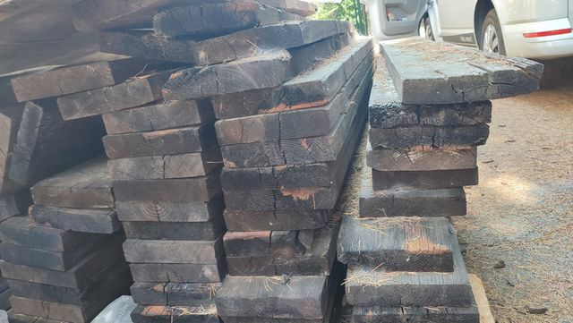 Detalles del productoMadera de tablones oscuros, ideales para proyectos de bricolaje o construcción. Son resistentes y tienen un aspecto rústico.