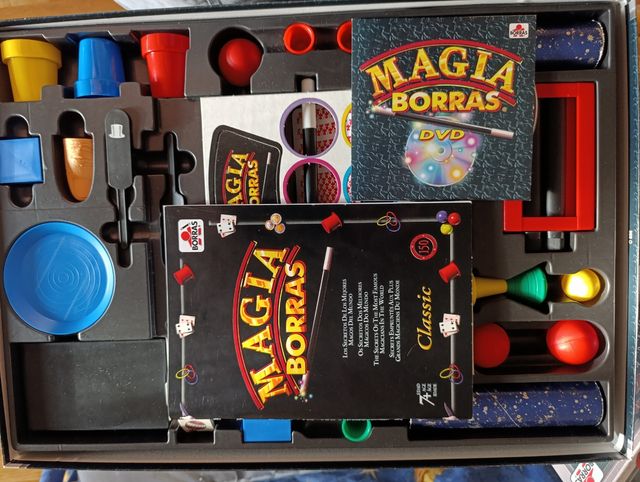 Detalles del productoMagia Borras, un juego de magia prácticamente nuevo. Incluye un DVD, una varita mágica y varios accesorios para realizar trucos. Todo está en perfecto estado, listo para sorprender.