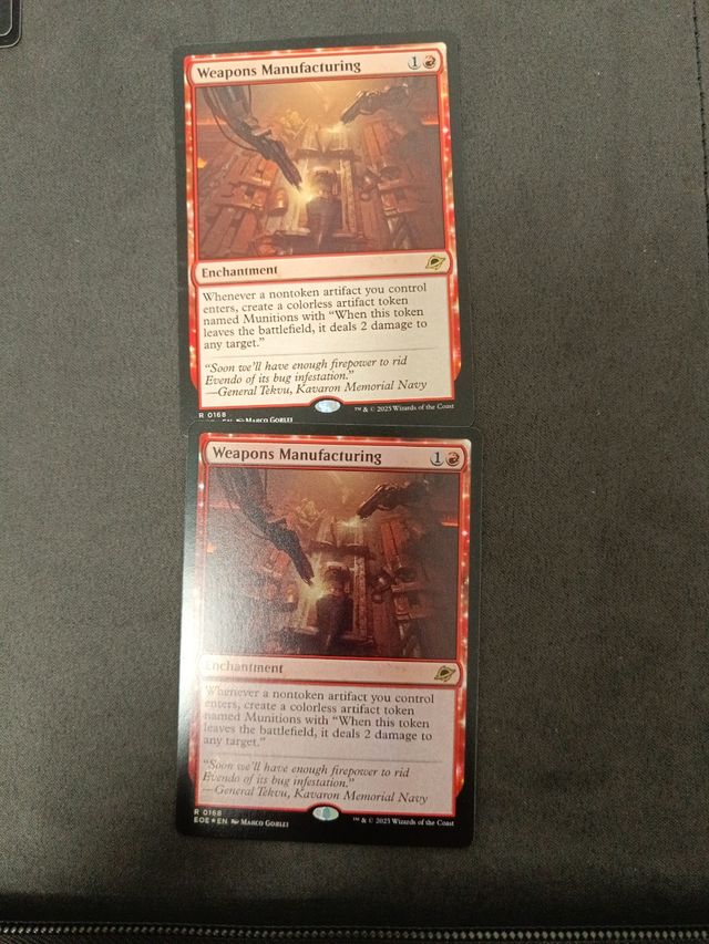 Detalles del productoVendo dos cartas de Magic: The Gathering, Weapons Manufacturing. Están en perfecto