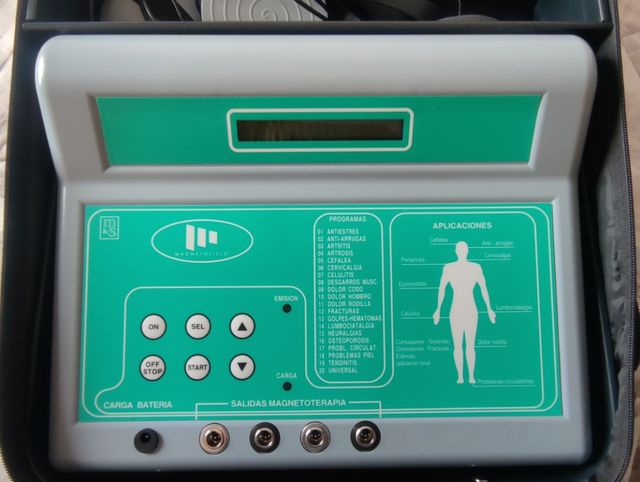 Dispositivo de Magnetoterapia, con los dos aplicadores, cables y maletín.