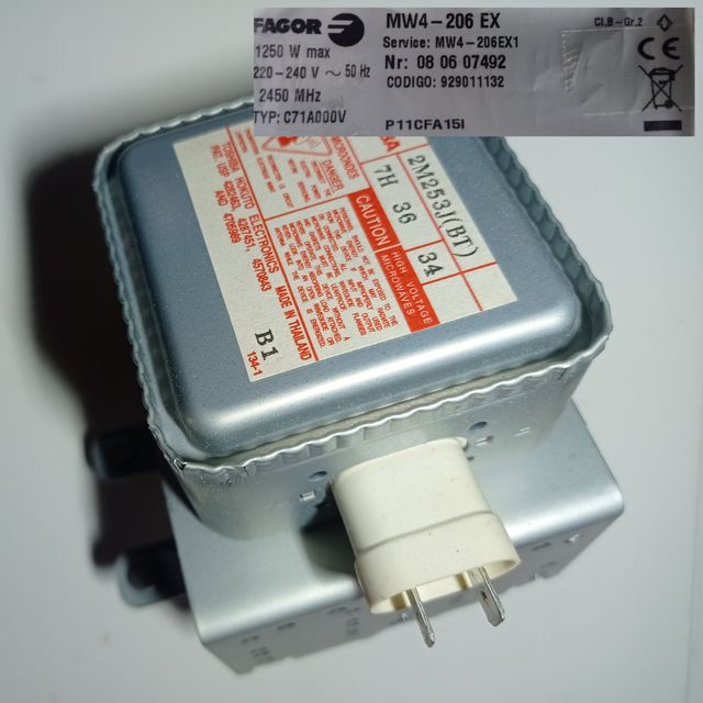 Detalles del productoMagnetrón de repuesto para microondas Fagor modelo MW4-206EX.