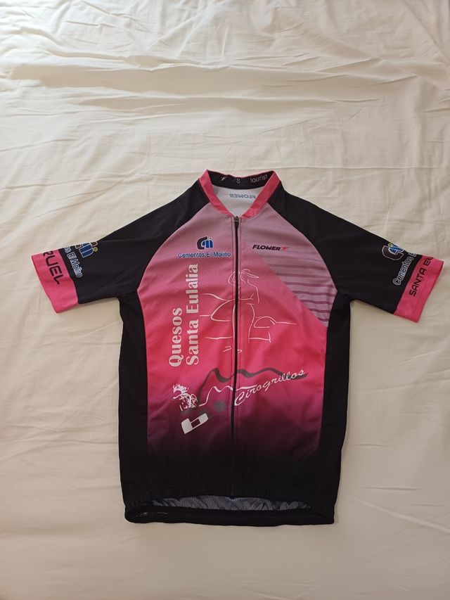 Detalles del productoMaillot ciclismo de manga corta, talla S. Es de color rosa y negro, con diseño deportivo.
