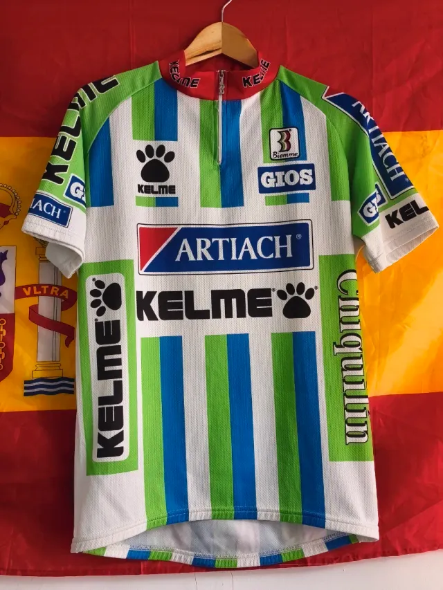 Detalles del productoMaillot Biemme .🇮🇹.Original .Equipo Kelme - Artiach .Temporada 1996.Epoca de L. Cubino , R.Heras ,Escartin ,Chozas ,Botero ,Edo ,Rubiera ...Más tarde Anselmo y Valverde .El equipo más combativo del TOUR de Francia .Joya vintage .Estado de 10.( Este tipo de maillots suelen estar muy usados...Este 0)🥇pasate por mi perfil 🥇