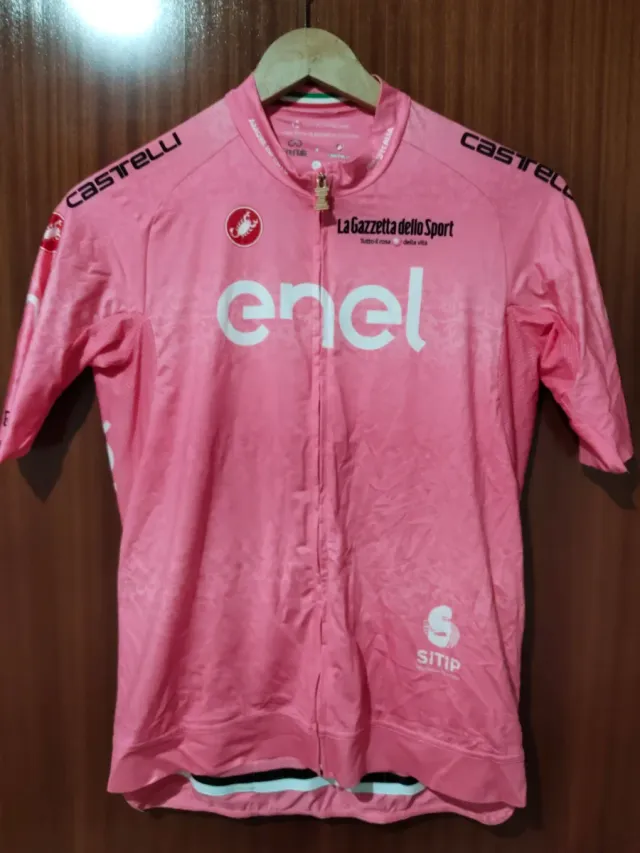 Detalles del productoMaillot de ciclismo original de Castelli, con diseño inspirado en el Giro de Italia y patrocinado por Enel.