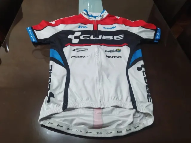 Detalles del productoMaillot de ciclismo de manga corta CUBE original talla S yo mido 1,68 y 68kg de peso y me está bien y guantes CUBE de entre tiempo también originales están en perfectas condiciones. No negociable
