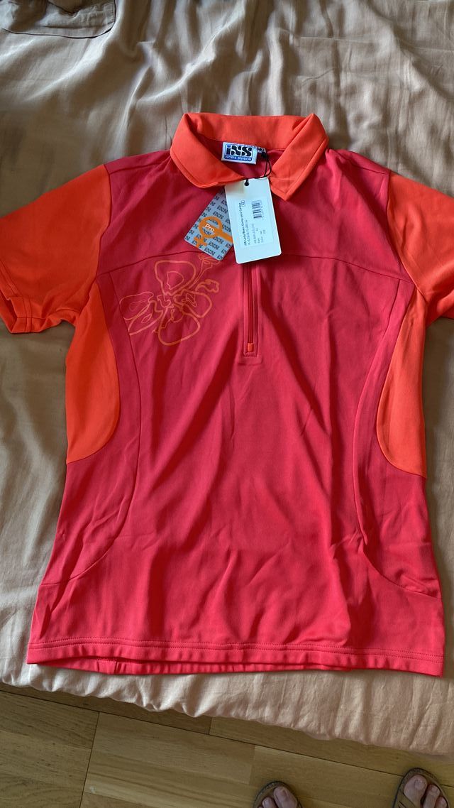 Detalles del productoCamiseta chica de bicicleta autentica IXS, nueva a estrenar con sus etiquetas. Roja y naranja. Cremallera cuello, tipo polo. Talla L (42), mide 50cm entre axilas. Transpirable, antibacteriana. Bolsillos traseros.
