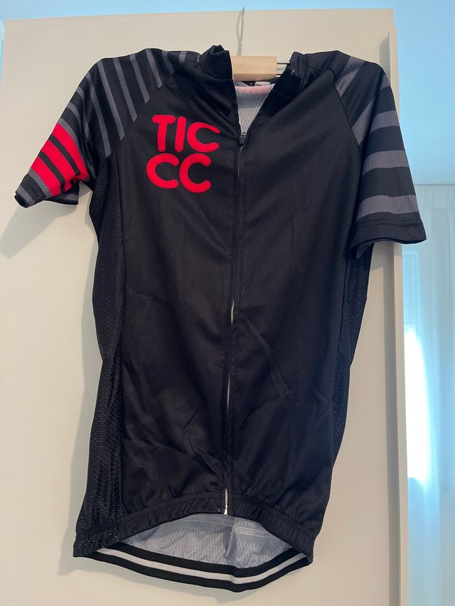 Detalles del productoMaillot de ciclismo para mujer en color negro con detalles en rosa y gris. Talla S.