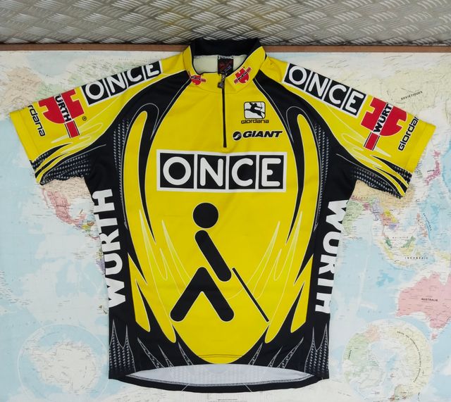 Detalles del productoSe vende maillot de ciclismo de la ONCE, marca Giordana, patrocinado por Giant y Wurth. Es del año 2001.
