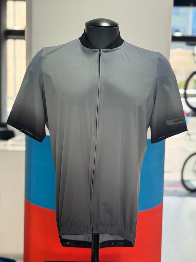 Maillot de ciclismo Shimano de manga corta, color gris y talla L. Está nuevo. - Diseño elegante y deportivo. - Color gris degradado. - Talla L.