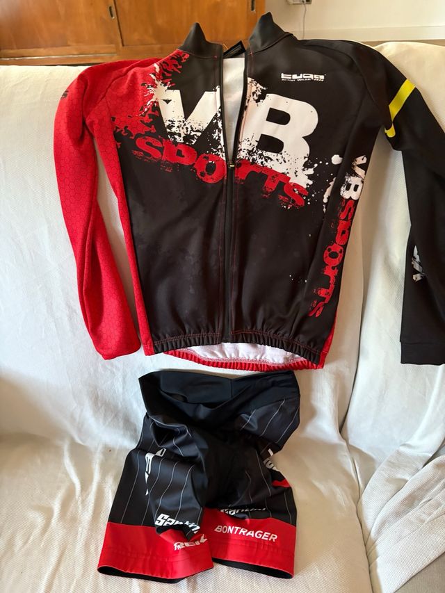 Detalles del productoConjunto de maillot y culote de ciclismo para niño de la marca Santini 12 años y bolsillos traseros. sin uso