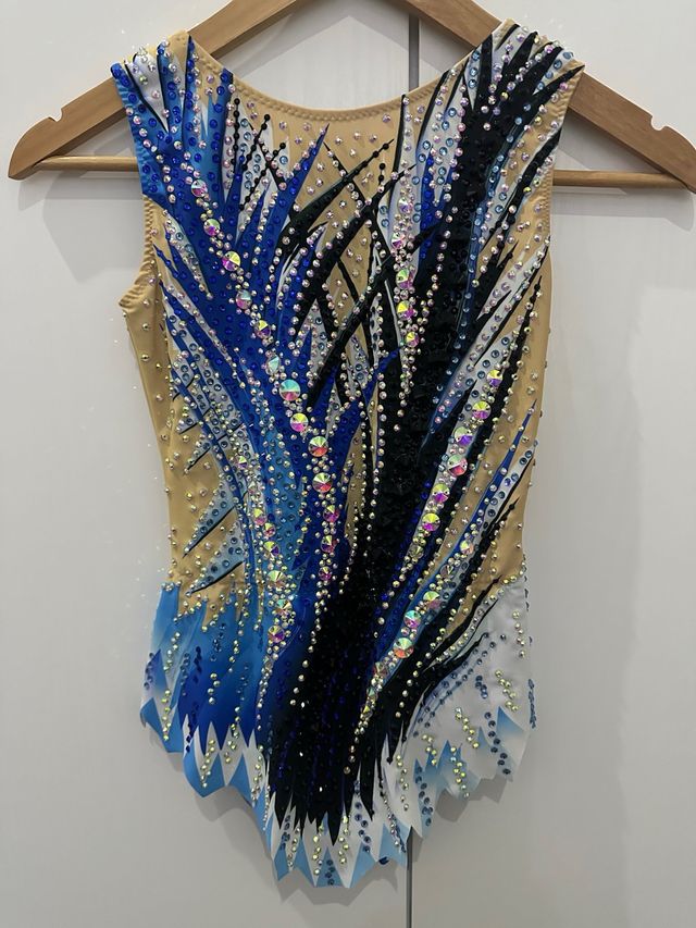 Detalles del productoMaillot de gimnasia rítmica con un diseño llamativo y lleno de detalles.