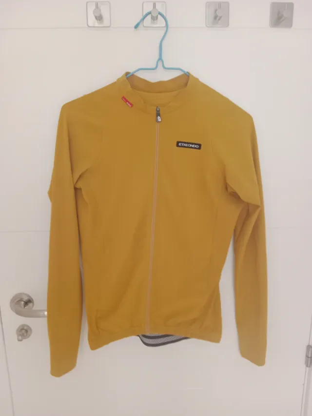 Detalles del productoMaillot de ciclismo de manga larga Etxeondo Alde, talla S. Como nuevo, muy poco uso. Tiene una ligerísima puntada (ver foto) en la zona trasera del hombro derecho de ahí su precio reducido.